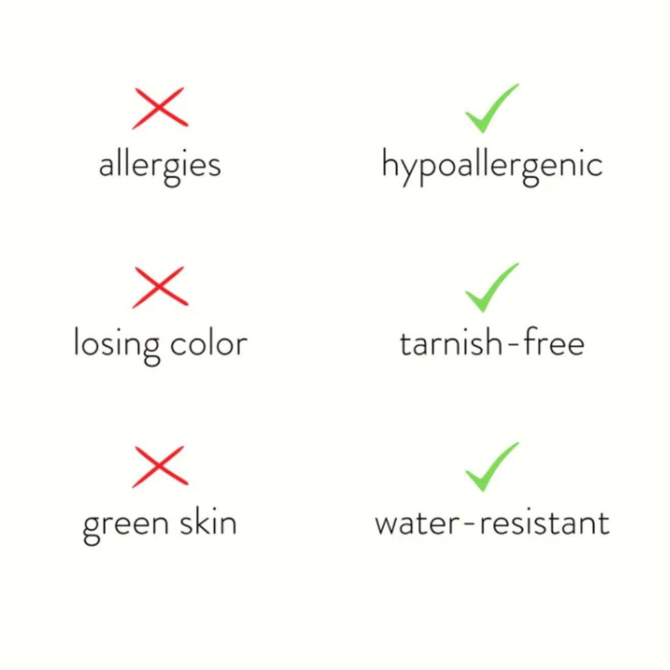 • Waterproof & tarnish free