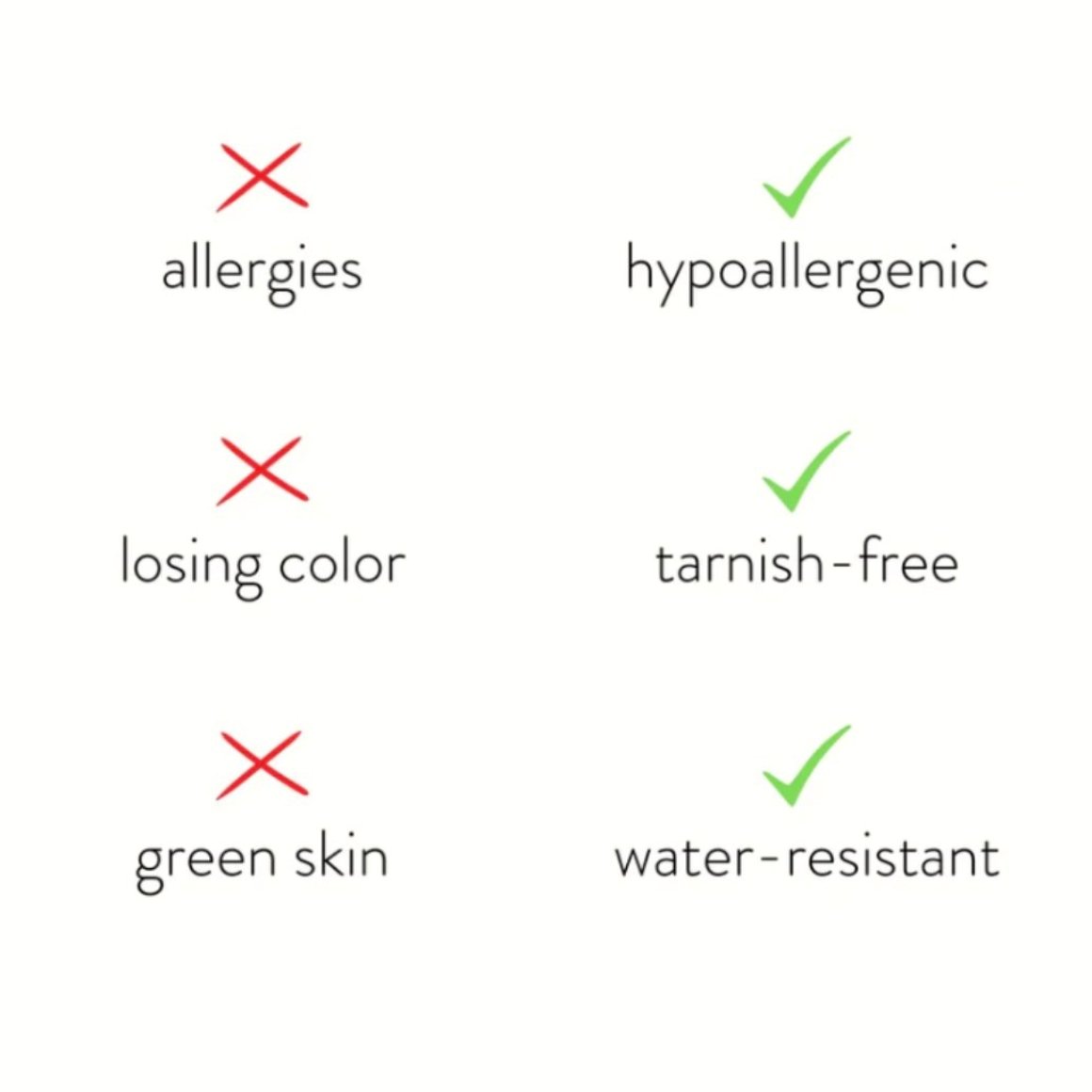 - Waterproof & tarnish free